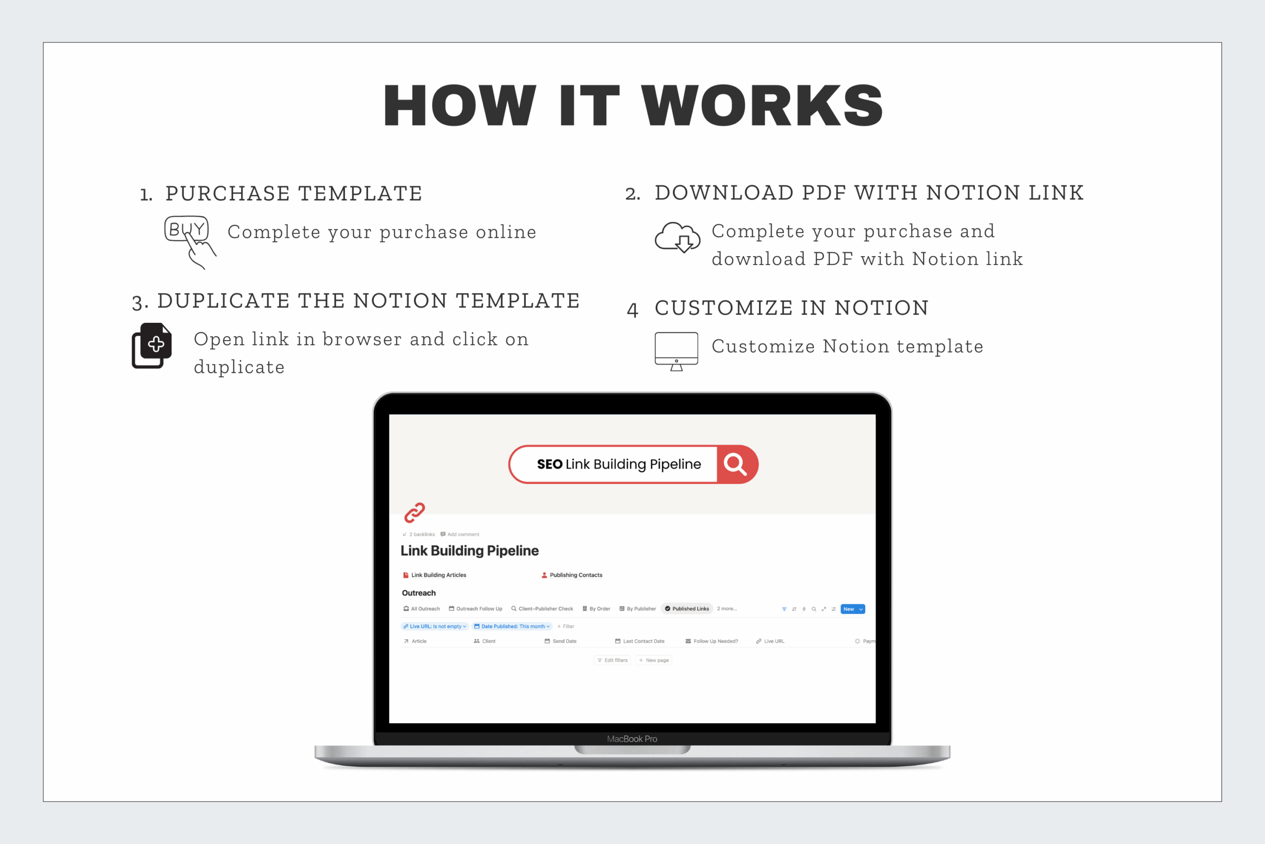Link building is one of the most time-consuming parts of SEO. Without a system, it’s easy to lose track of conversations, forget follow-ups, or misplace publisher details. A Notion dashboard template solves this by keeping everything in one workspace.