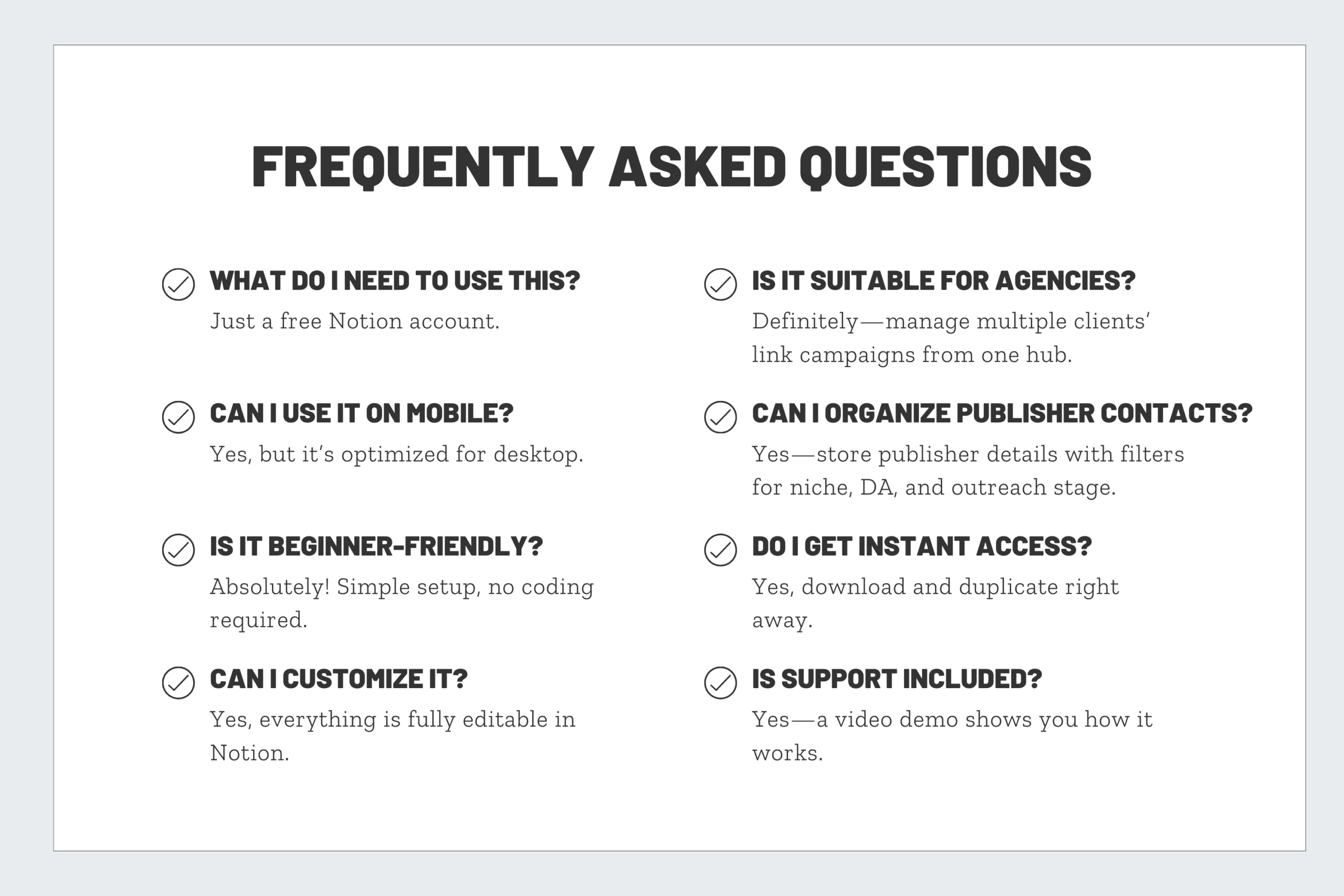 Absolutely. Add your own fields for publisher type, industry, or link metrics. Notion is flexible, so you can shape the template to fit your workflow.