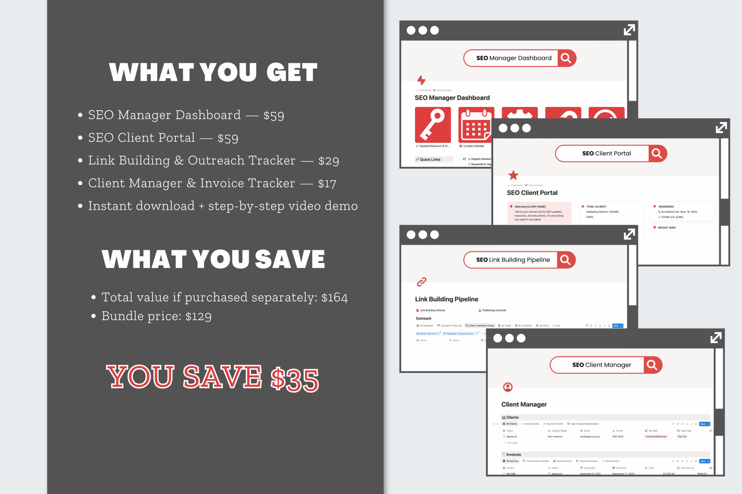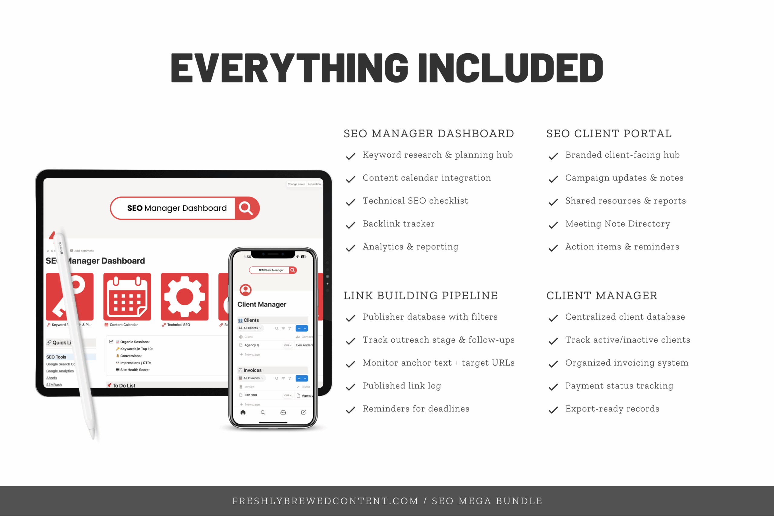 Whether you’re a freelancer, consultant, or small agency, this bundle gives you everything you need to deliver SEO results while staying organized.