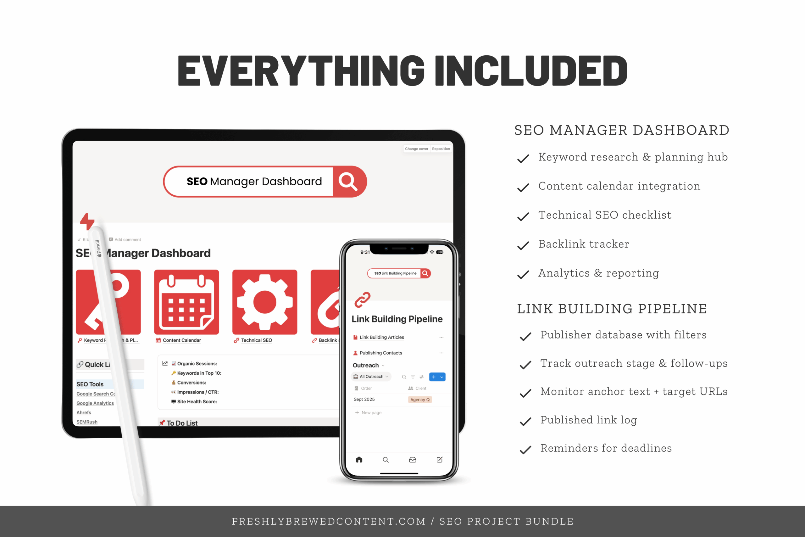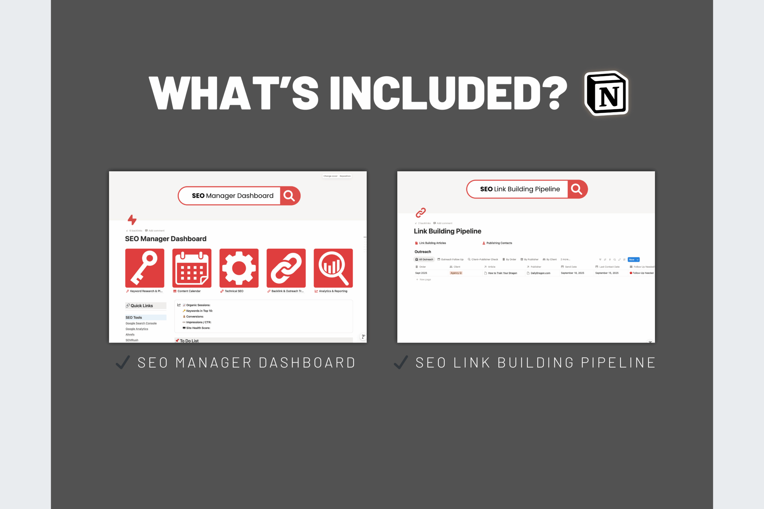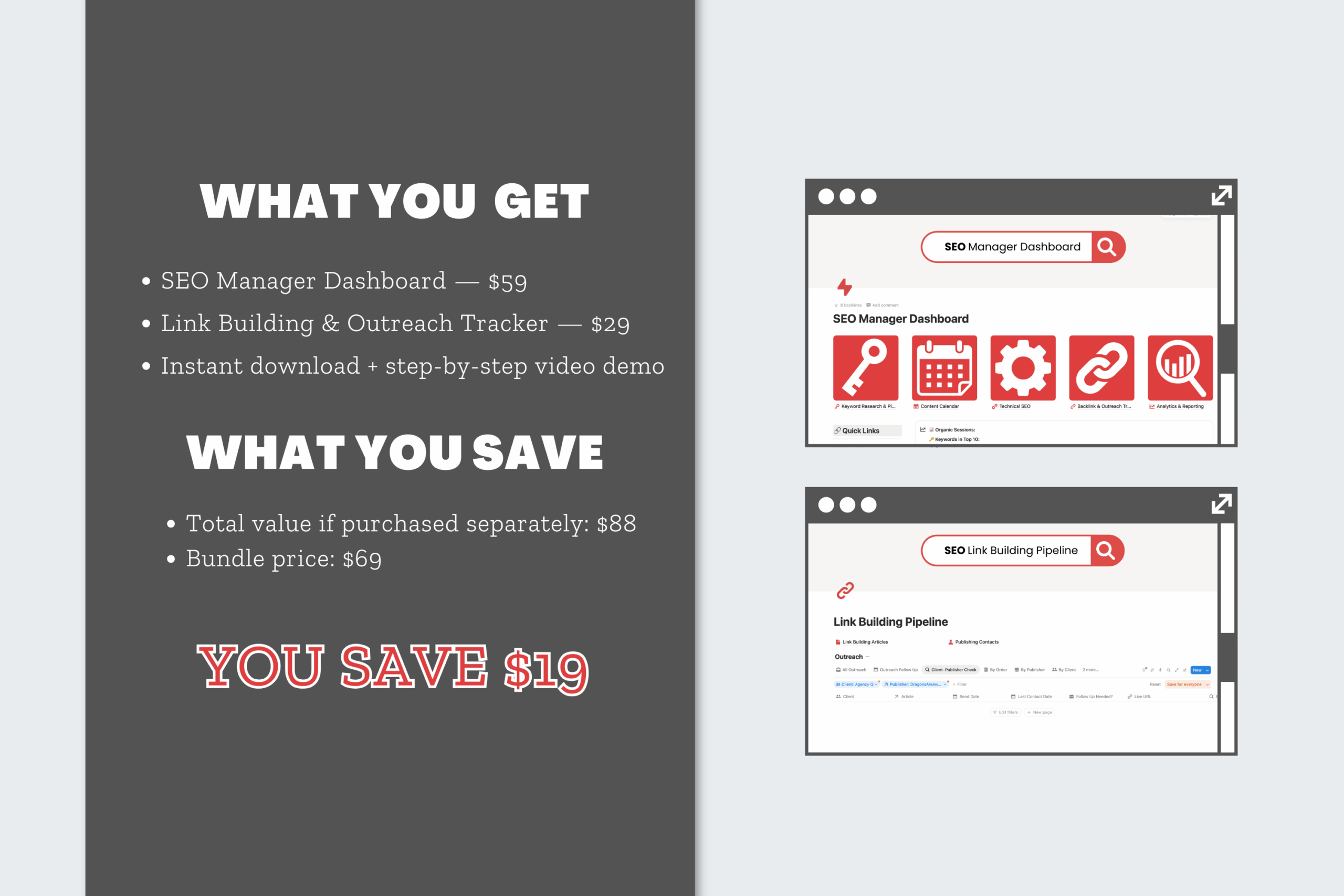 SEO consultants who need both a Notion project management template and an outreach tracker.