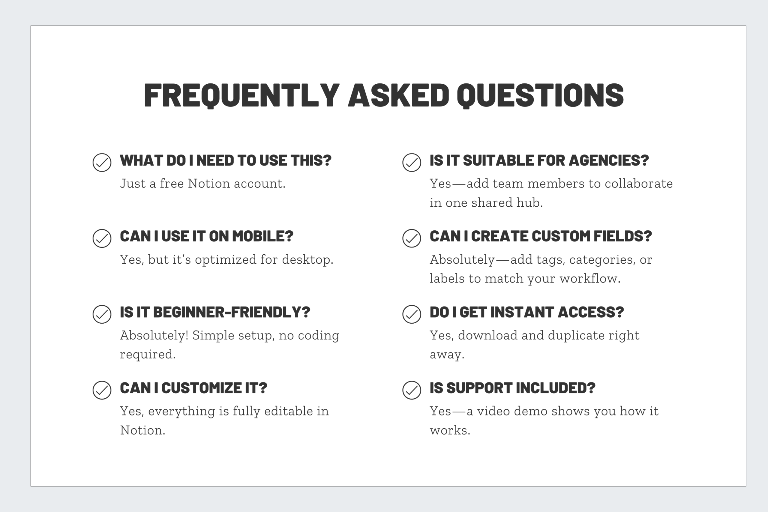 All of our templates are easy to customize with Notion icons, covers, and widgets. They’re fully compatible with Notion AI, the Notion API, and integrations like Zapier. Most importantly, they’re designed for clarity and daily use—so you spend less time organizing and more time growing search traffic.
