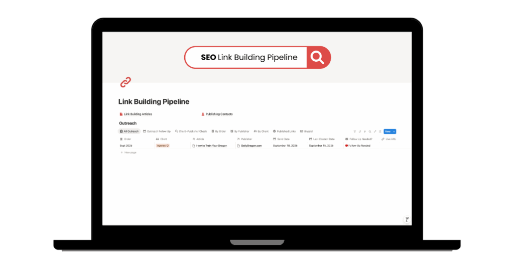 As any link builder will tell you, outreach has a lot of moving parts, and it’s easy to lose track when everything lives across multiple spreadsheets, emails, and Google Docs. This Notion dashboard keeps everything in one place so you can focus on building relationships—not chasing links.