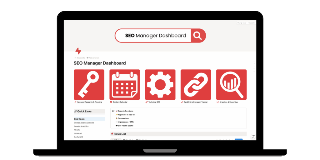 🎯 Get the SEO Manager Dashboard to organize strategy, content, and reporting — all in one Notion workspace.